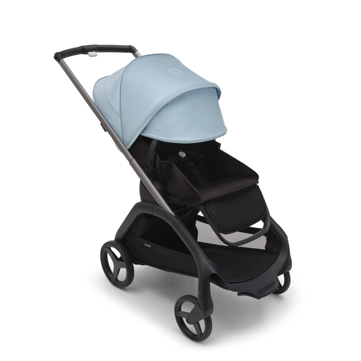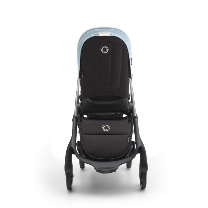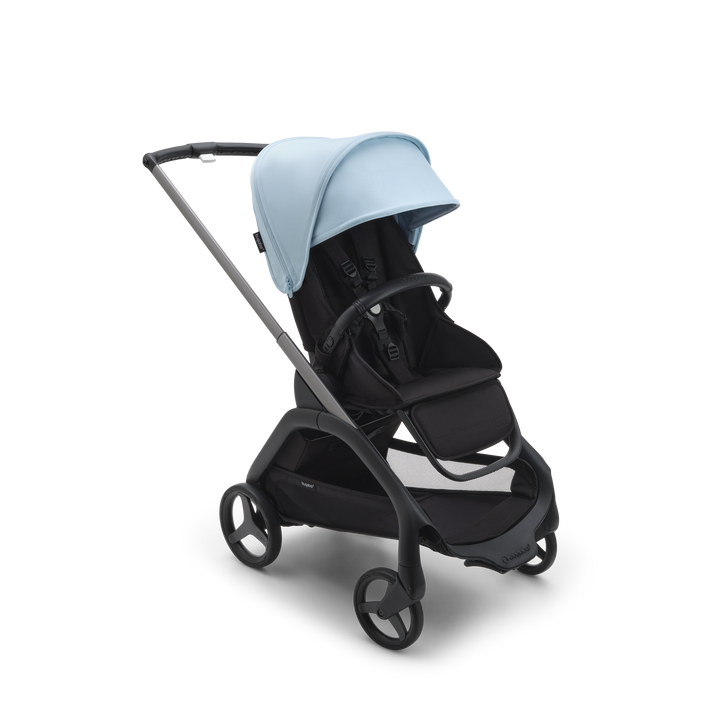 For any urban environment, the Bugaboo Dragonfly Pushchair in Graphite/Midnight Black-Skyline Blueoffers precision steering and full suspension. Plus, the new urban wheel design has enhanced traction for sharper handling and easier navigation.