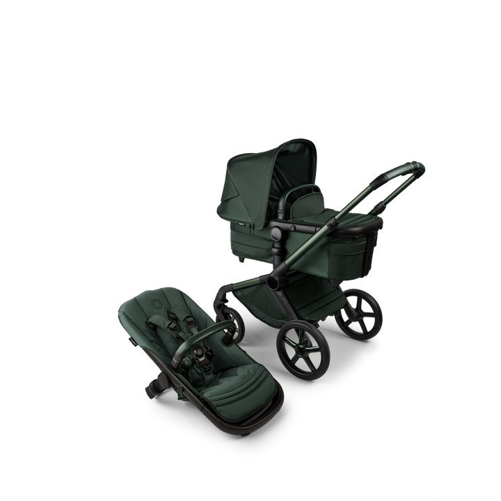 The Bugaboo Noir Limited Edition in Midnight Green – a Bugaboo Fox 5 exclusive. Elevated in three shades of the night, and crafted for exceptional comfort, this iconic all-terrain pushchair design goes beyond our best ride ever. The Noir limited edition features uniquely styled, sturdy yet light chassis and comfort Knit seat. The limited edition pushchair also has an extra large underseat basket with a new built-in cover to offer upgraded protection for your essentials.