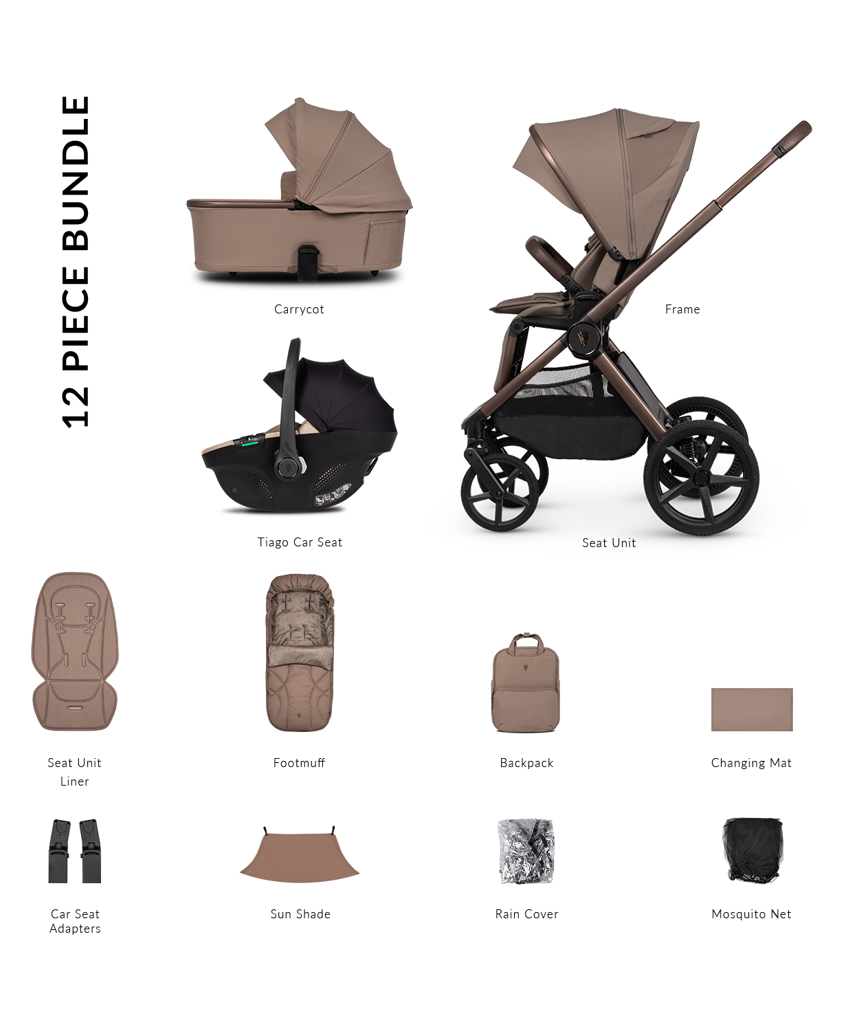 The Venicci Tinum Upline 3 3in1 in Sand is the third generation of the bestselling Upline pram, now featuring the innovative Up2Go carrycot folding system.